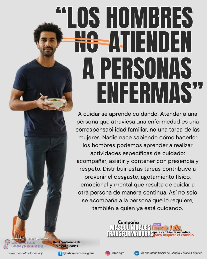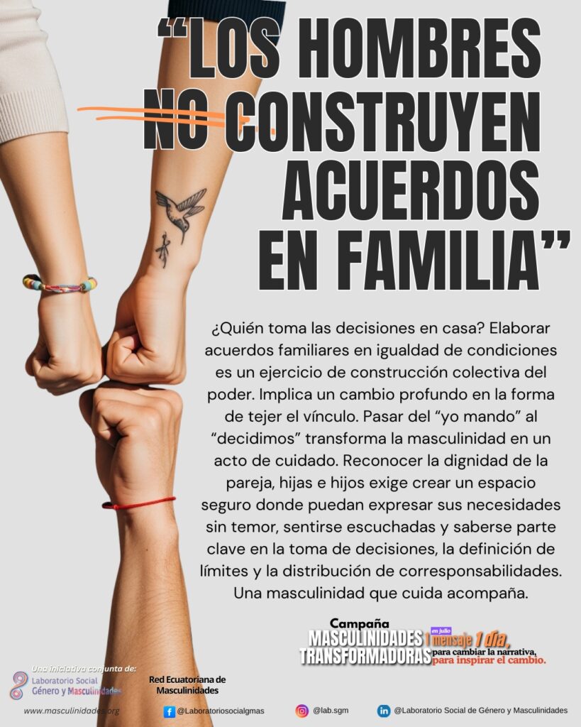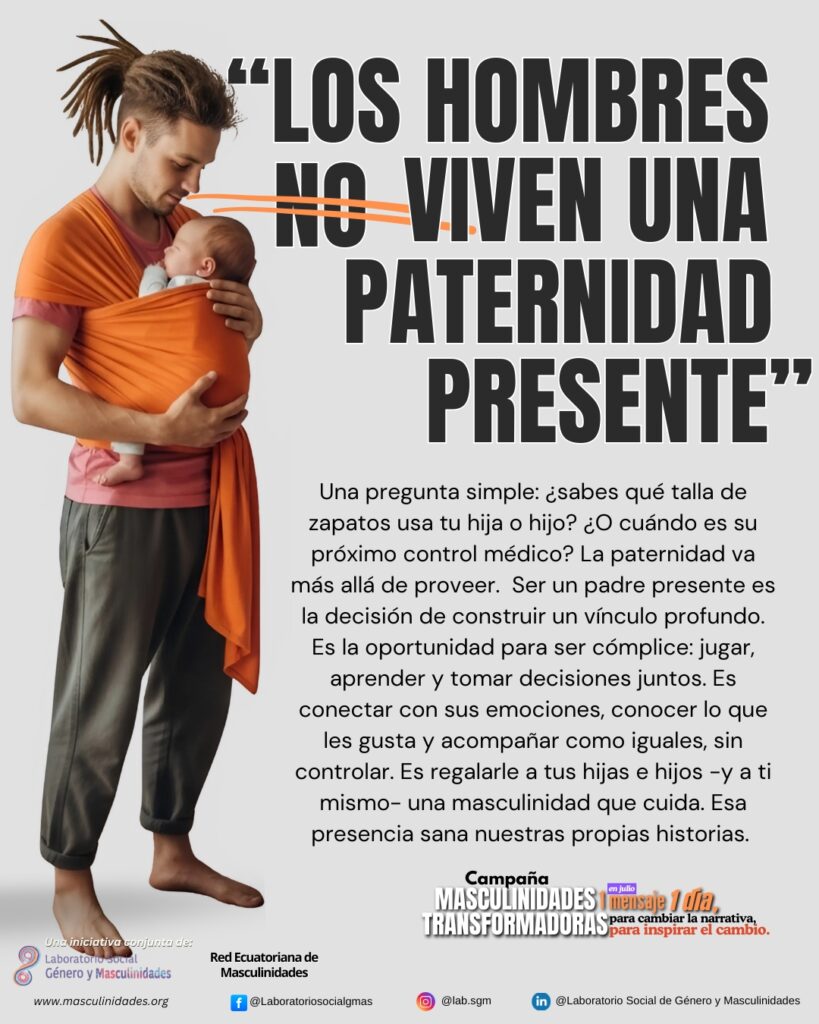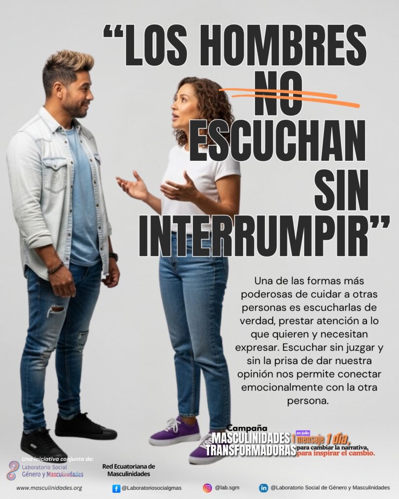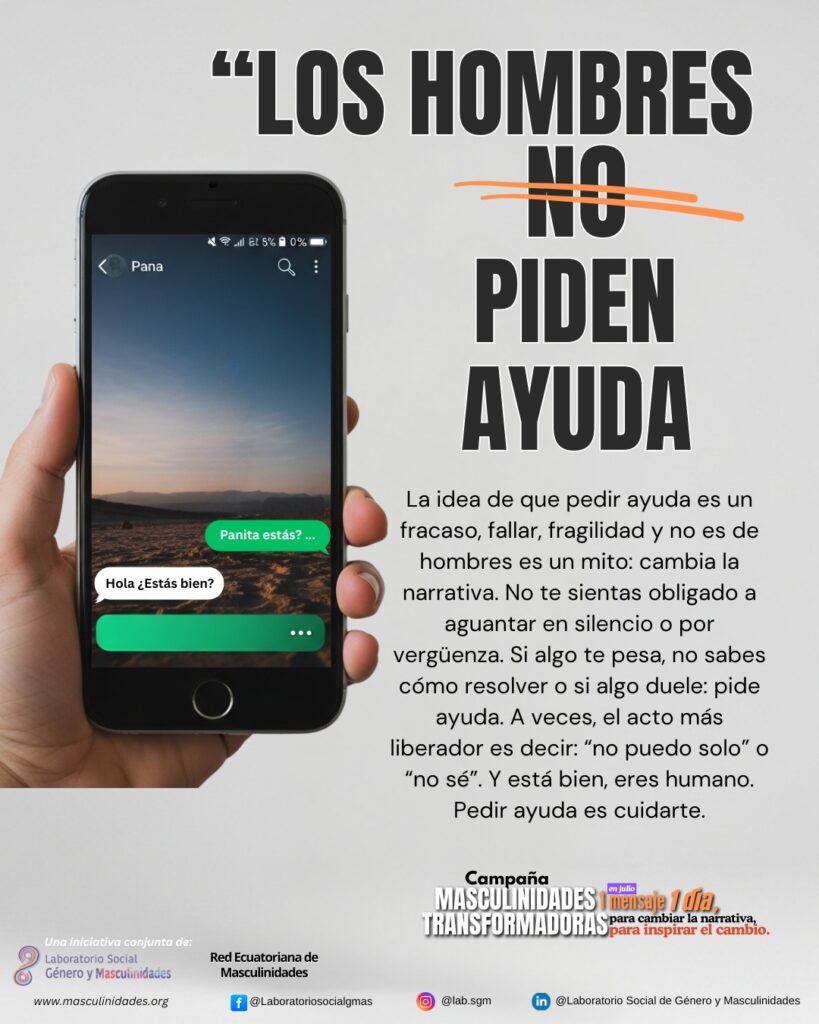 Por eso, durante este mes compartiremos cada día un mensaje para cambiar la narrativa e inspirar el cambio. Sigue la campaña conjunta del Laboratorio y la Red Ecuatoriana de Masculinidades #MasculinidadesTransformadoras!